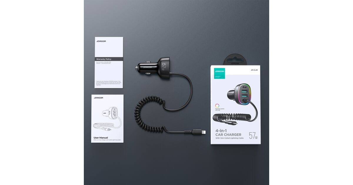 Táto nabíjačka do auta Joyroom JR-CL20 je dokonalým riešením, ak potrebujete nabíjať viacero zariadení naraz vo svojom aute. S maximálnym výkonom 57 W a zabudovaným Lightning káblom poskytuje rýchle a efektívne nabíjanie.