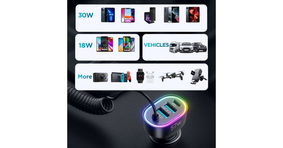 - 🔋 Maximálny výkon 57 W: Zabezpečuje rýchle nabíjanie pre iPhone, Samsung a iné smartfóny.