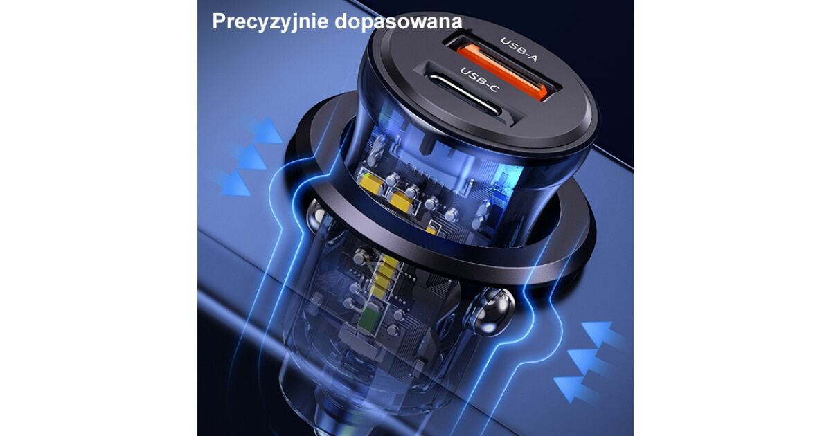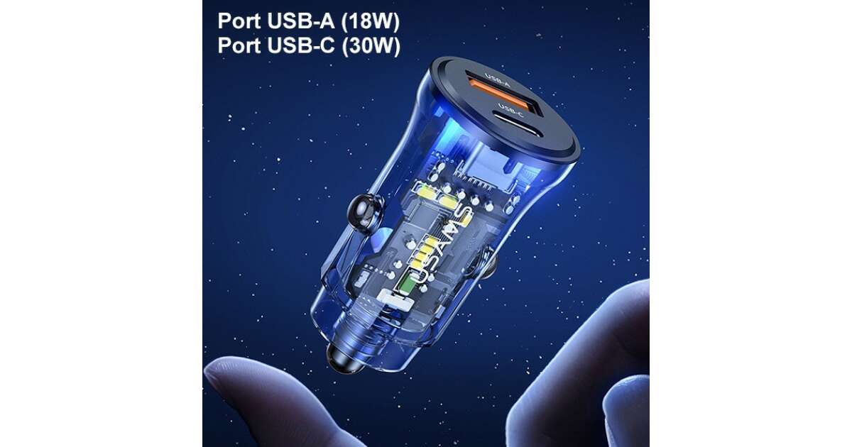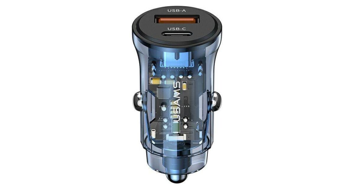 USAMS C32 nabíjačka do auta 1xUSB+1xUSB-C 30W rýchle nabíjanie modrá (US-CC164) popis
