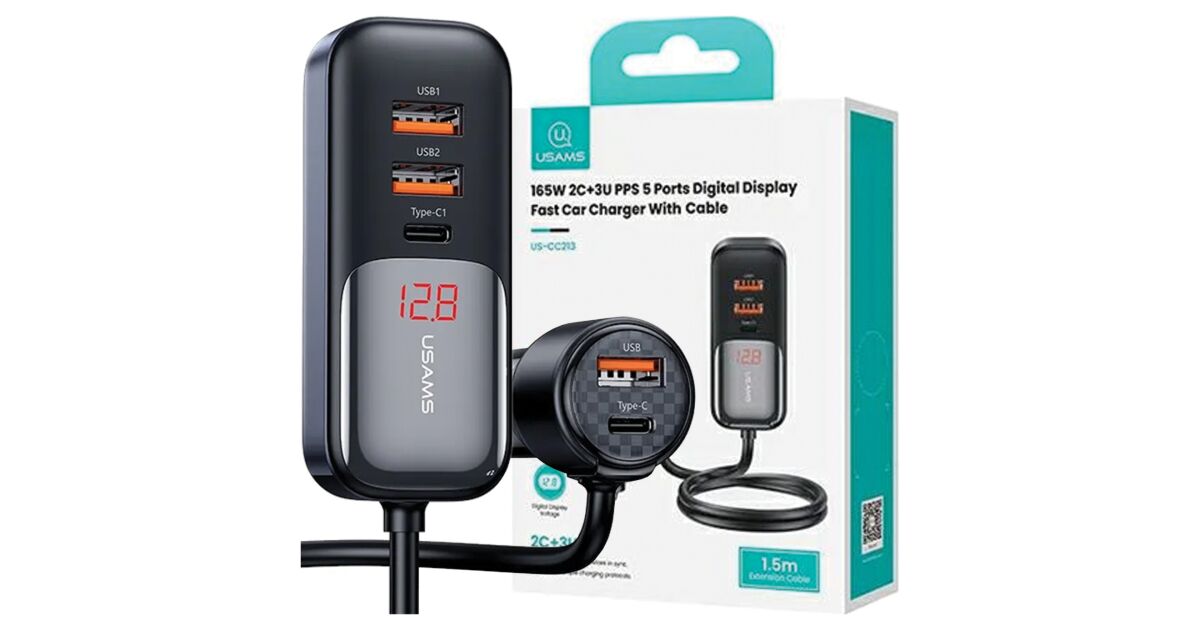 Táto nabíjačka do auta od USAMS ponúka 5 portov, 3 USB-A a 2 USB-C konektory, takže môžete nabíjať viacero zariadení naraz. Vďaka výkonu 165W je rýchle nabíjanie zaručené a technológie PD a QC zaisťujú maximálnu kompatibilitu a bezpečné nabíjanie. Vstavaný digitálny displej neustále zobrazuje napätie, takže môžete vždy sledovať priebeh nabíjania.