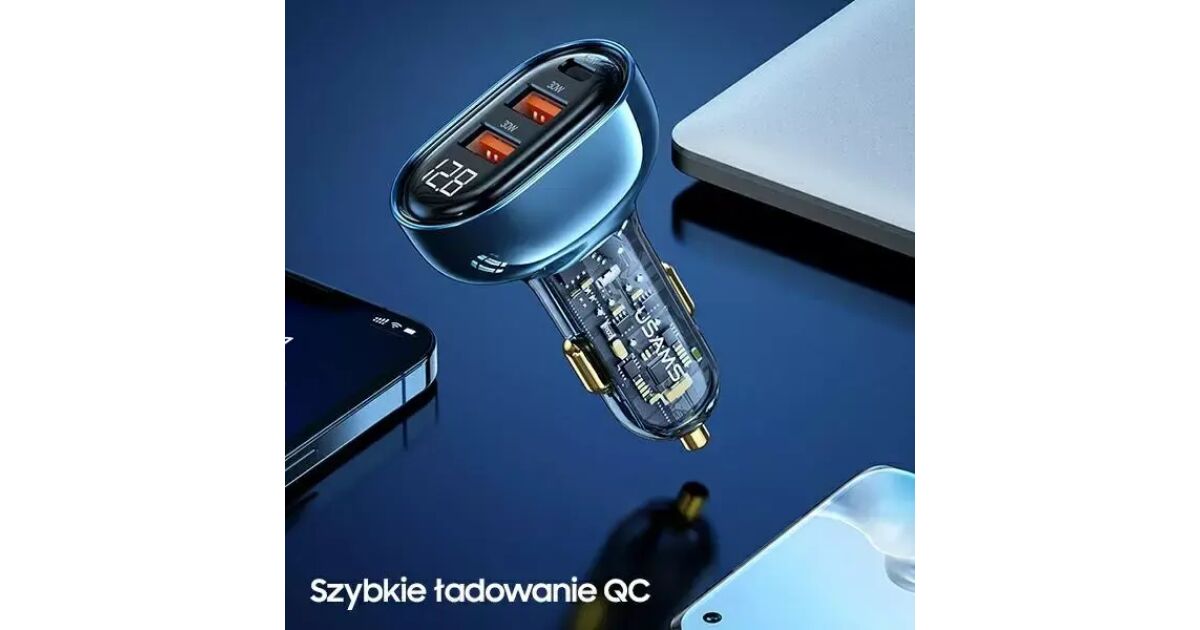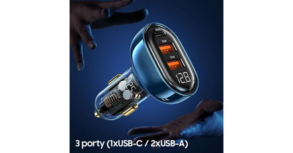USAMS nabíjačka do auta 1xUSB-C 2xUSB-A 125W rýchle nabíjanie transparentná modrá CC158CC02 (US-CC158) názory