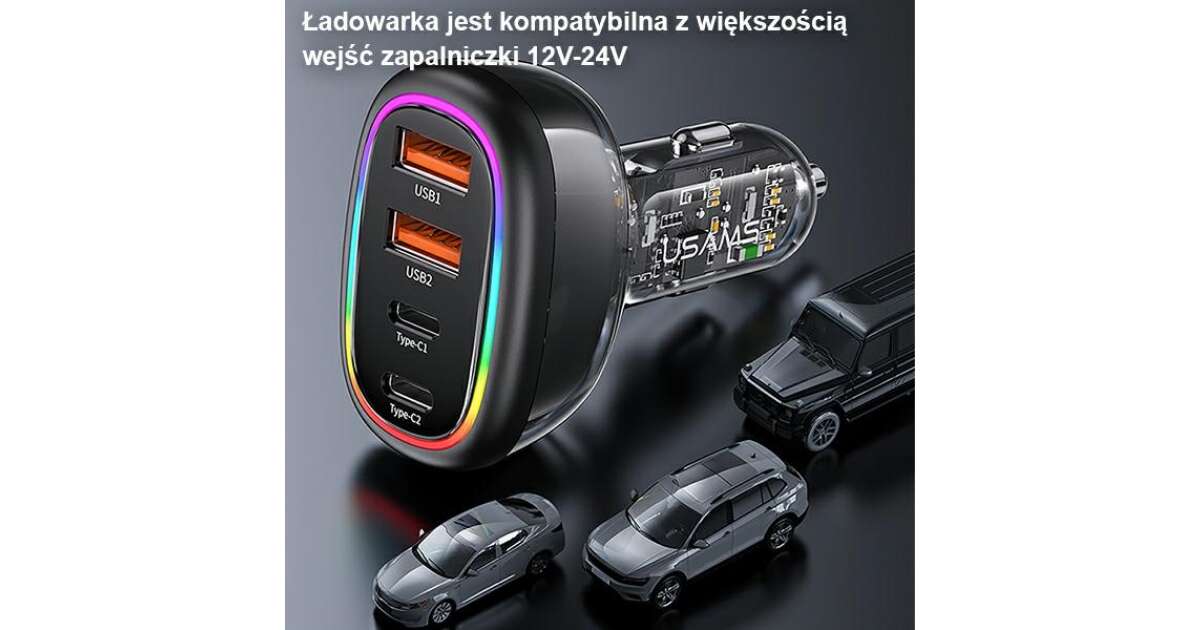 Táto nabíjačka do auta USAMS dokáže nabíjať až štyri zariadenia naraz, pretože má dva porty USB-A a dva porty USB-C. Výkon 120 W zaisťuje rýchle nabíjanie, takže ste vždy pripravení, aj keď ste na cestách. Má tiež pôsobivý farebný LED svetelný kruh, ktorý dodáva štýlový vzhľad.