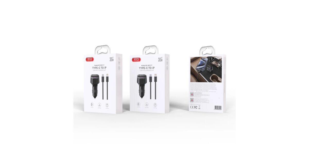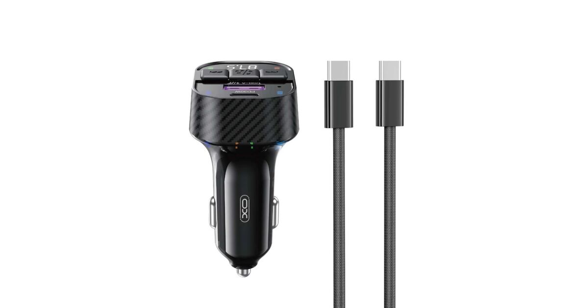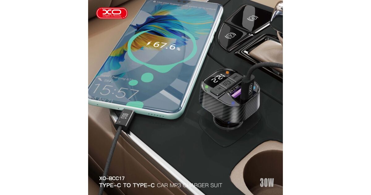 XO BCC17 FM Transmitter nabíjačka do auta 30W, s káblom USB-C/USB-C v balení