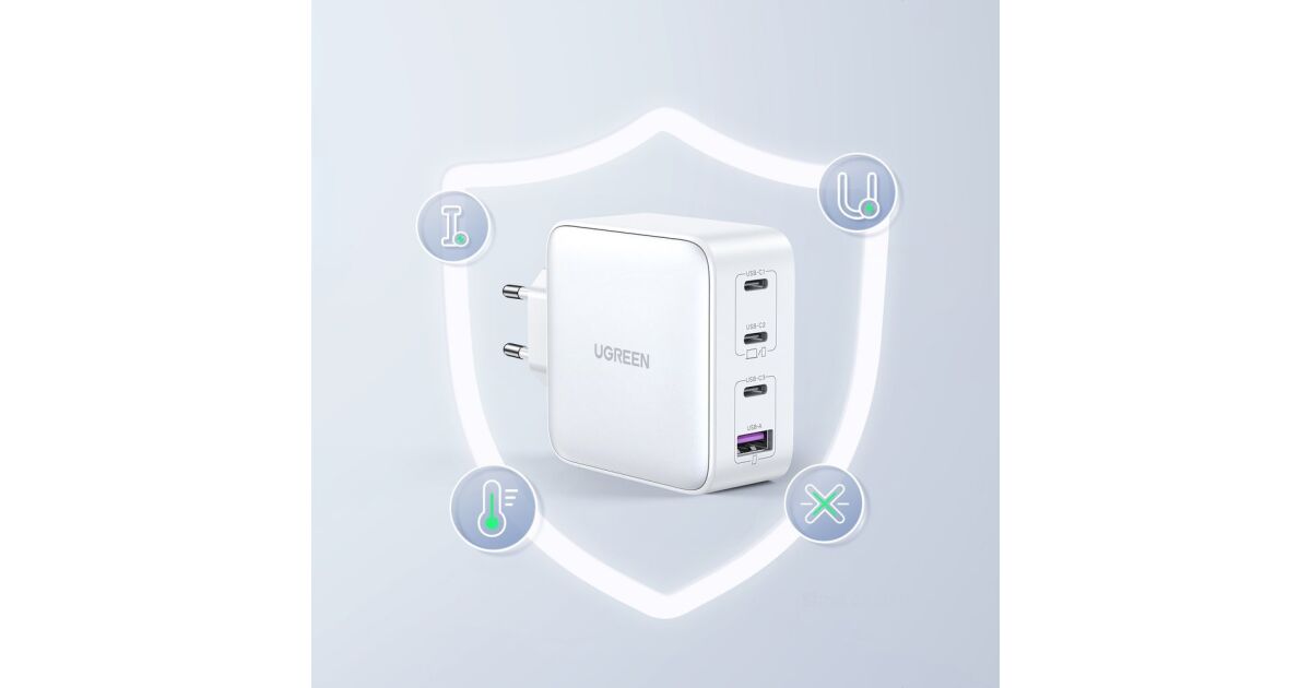 Zasilacz Ugreen CD226, GaN 100 W, 3 x USB-C, 1 x USB-A, PD 3.0, QC 4+,biały