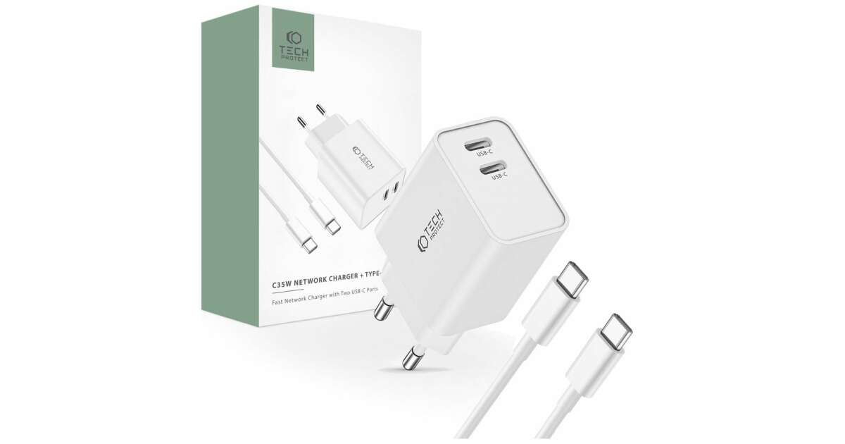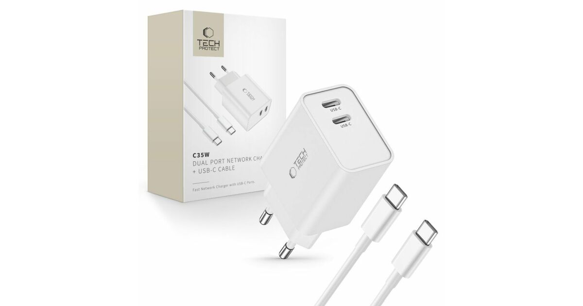 Tech-Protect C35W Dvojportová sieťová nabíjačka USB-C: Rýchle a bezpečné nabíjanie ⚡️