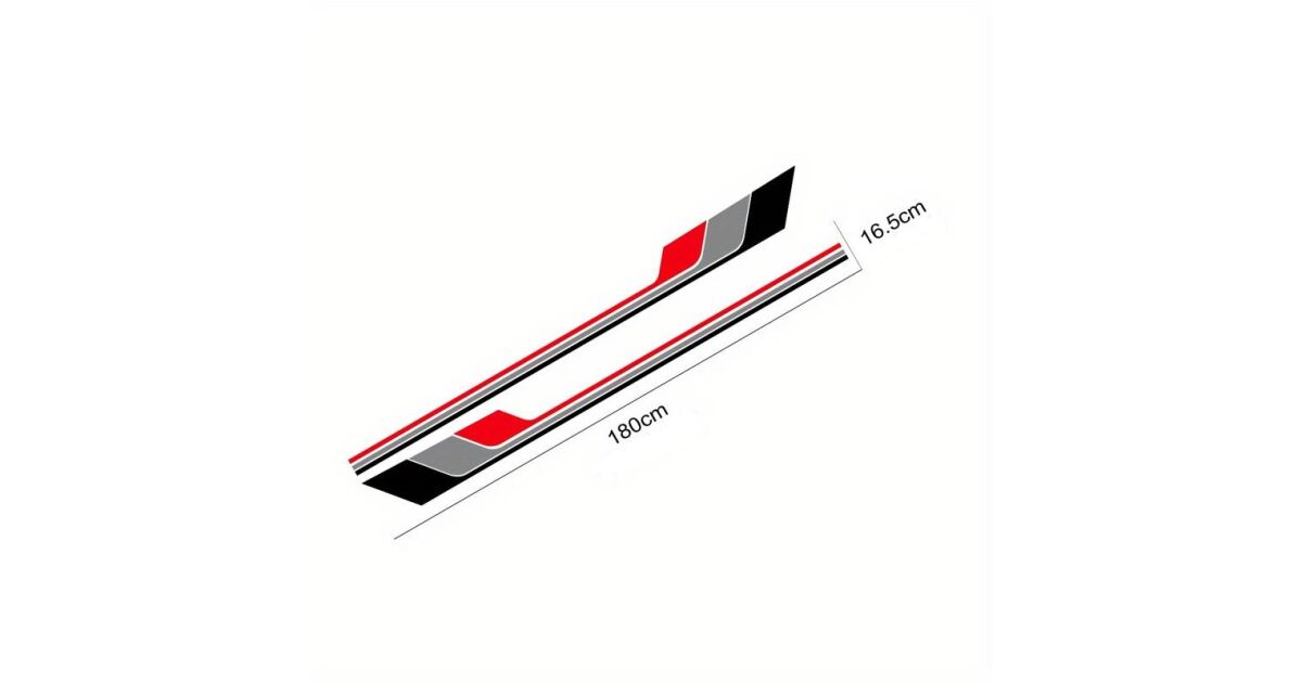 Oživte svoje auto touto štýlovou sadou 2 tuningových nálepiek! S modelom "Racing Stripes V2" v čiernej, sivej a červenej farebnej kombinácii zaručene upútate pozornosť na cestách. 😎