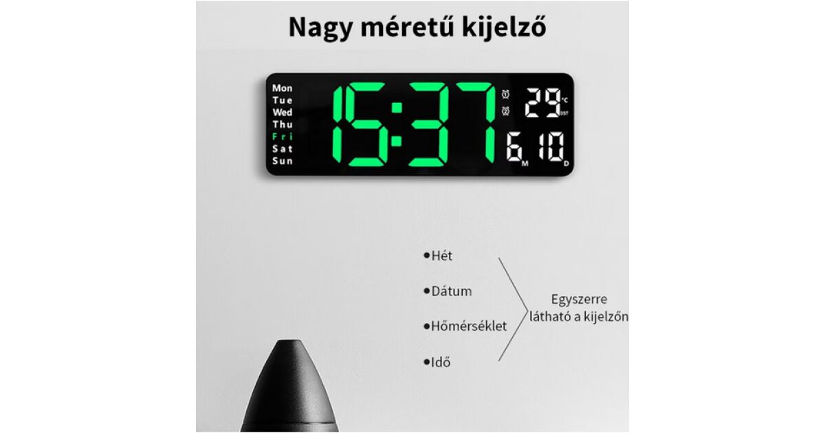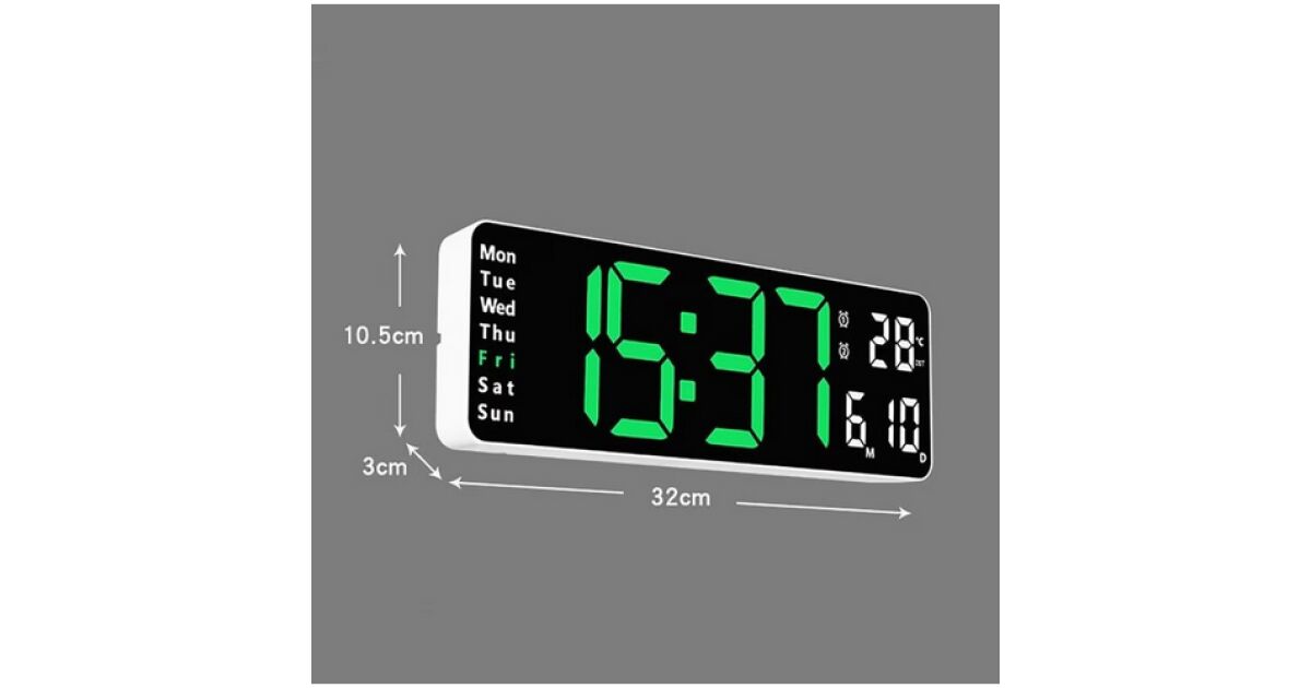 Tieto štýlové a moderné LED digitálne nástenné hodiny sú perfektnou voľbou do každej domácnosti. Vďaka veľkému a ľahko čitateľnému displeju budete mať vždy jasný prehľad o čase, dátume a teplote. Diaľkové ovládanie umožňuje pohodlné ovládanie všetkých funkcií.