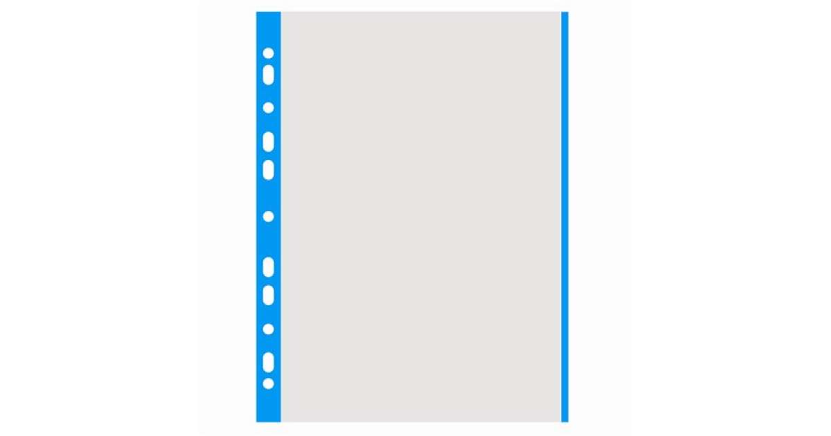 Tieto fólie na dokumenty A4 formátu, vhodné na vloženie do priečinkov, sú ideálne na dlhodobé uloženie vašich dokumentov bez nutnosti dierovania. Oranžové fólie majú hrúbku 40 mikrónov a 11 otvorov na vloženie do priečinkov. Modrý bočný pásik uľahčuje kategorizáciu dokumentov.