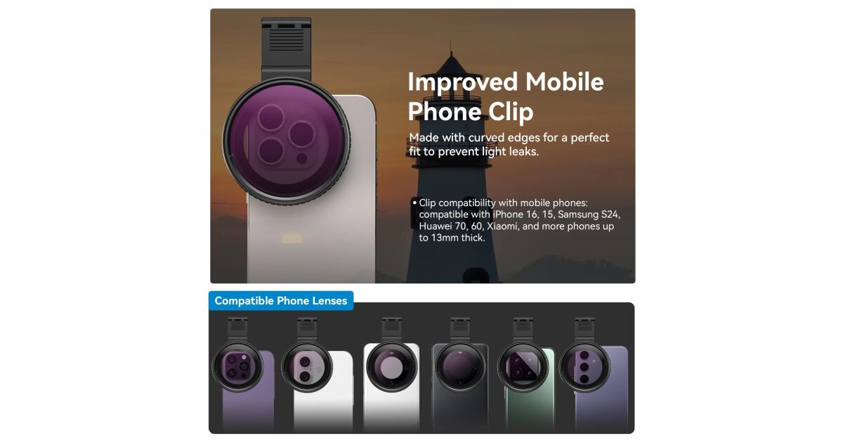 - Univerzálna kompatibilita: Priemer 67 mm je kompatibilný s väčšinou smartfónov, vrátane modelov iPhone 16 Pro Max, iPhone 16 Pro, iPhone 15, 14, Samsung S25, S24, S23.