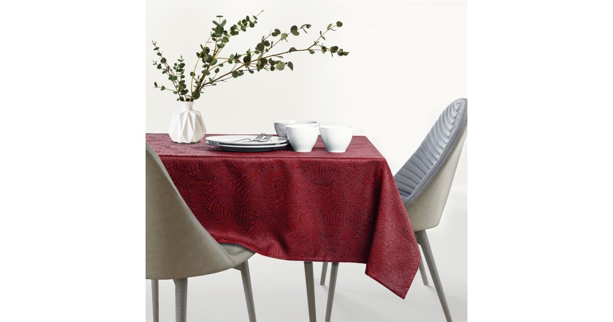 Názov produktu (automaticky vymazaný): obrus Gaia bordeaux s reliéfom zeleniny 155x250 AmeliaHome