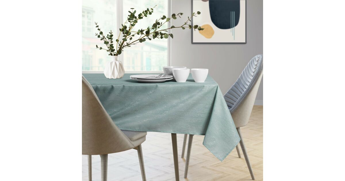 Názov produktu (automaticky vymazaný): obrus Vesta mint green embossed modern 155x250 AmeliaHome