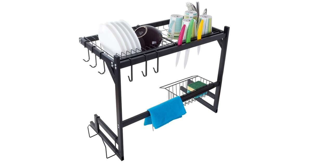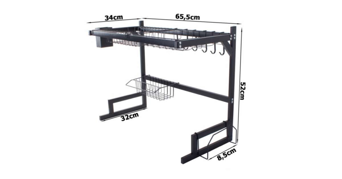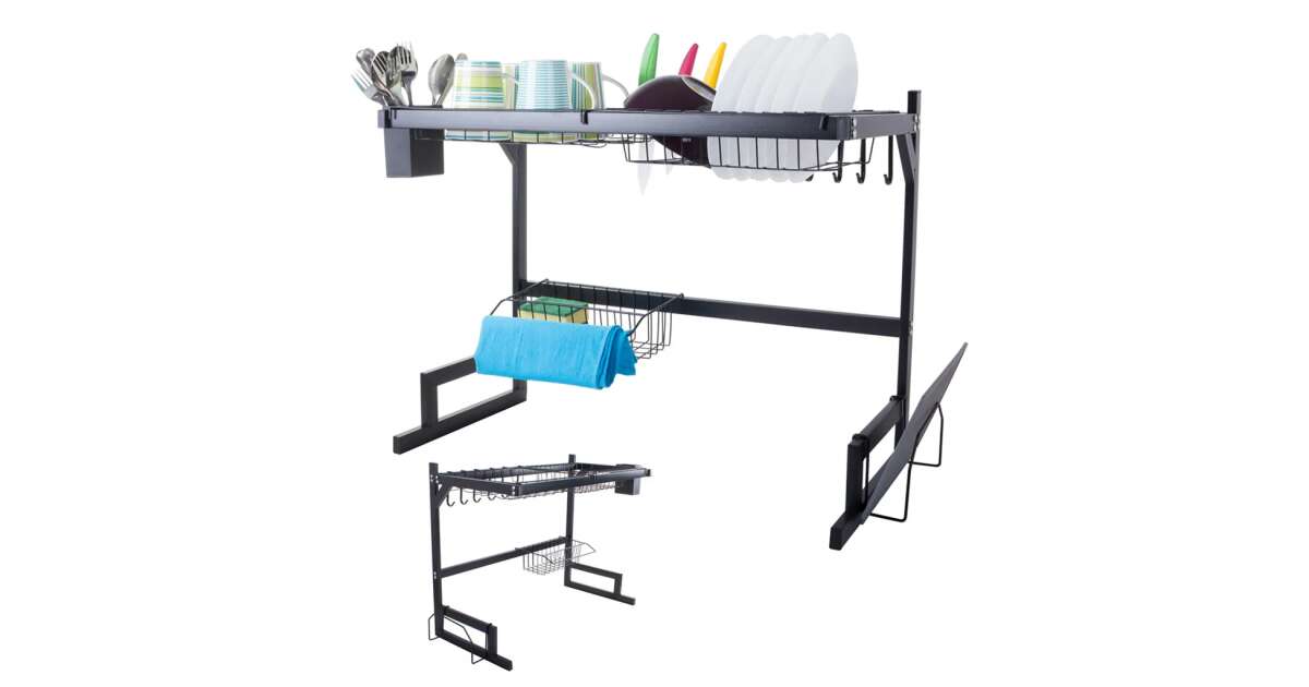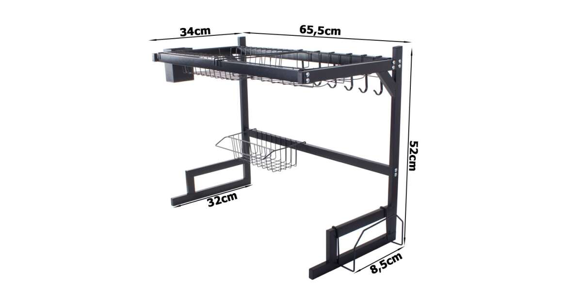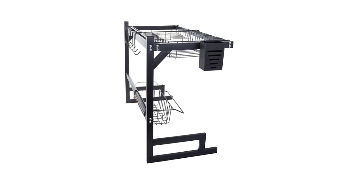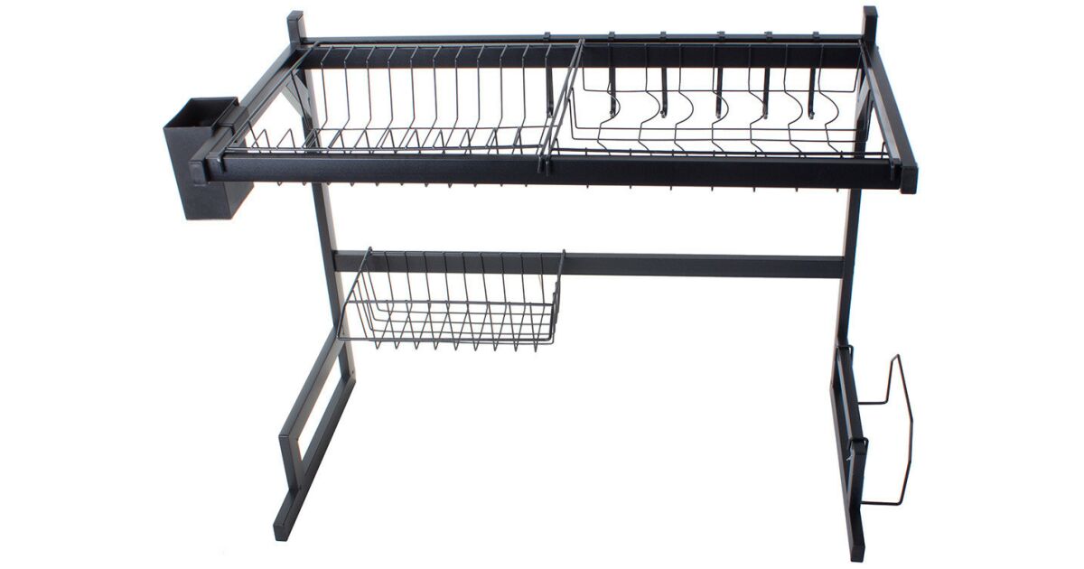 Tento čierny sušiak na riad je skvelým riešením na šetrenie miesta v kuchyni. Umiestnený nad umývadlom využíva často nevyužitý priestor a poskytuje dostatok miesta na odkladanie a sušenie riadu, príborov a iných kuchynských potrieb.