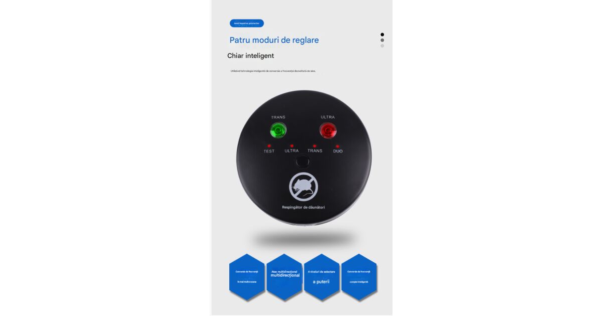 - 🐀 Odpudzovač potkanov: Špeciálne ultrazvukové frekvencie proti potkanom.