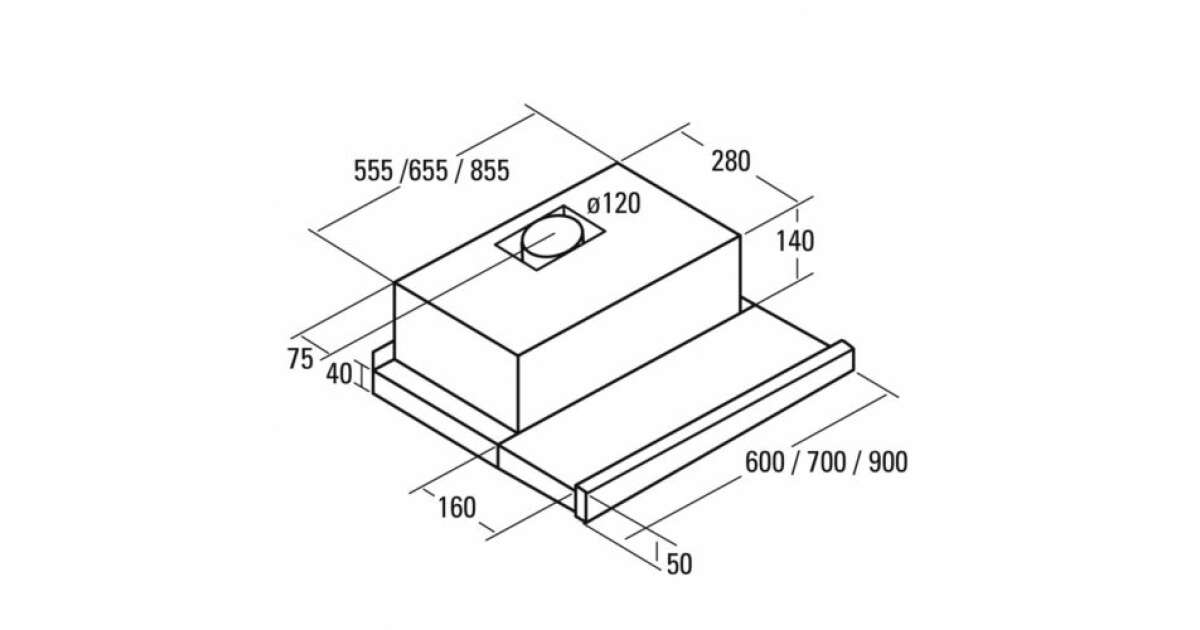 Vetranie: Zariadenie pracuje v režime odvodu vzduchu (je potrebný priemer pripojenia 120 mm). Pre vnútornú recirkuláciu sú potrebné filtre s aktívnym uhlím (predávajú sa samostatne).
