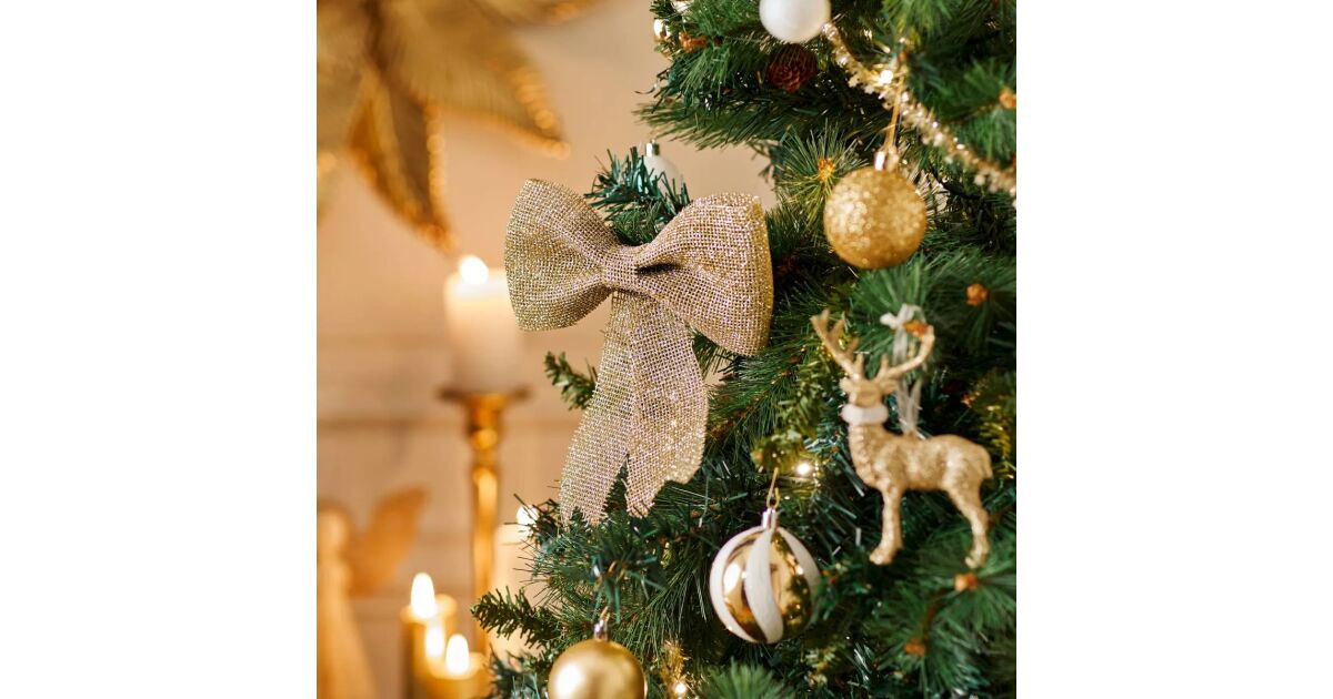 Zlatá flitrová mašľa na vianočný stromček - Elegantná sviatočná dekorácia ✨
