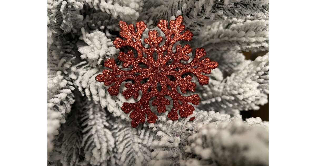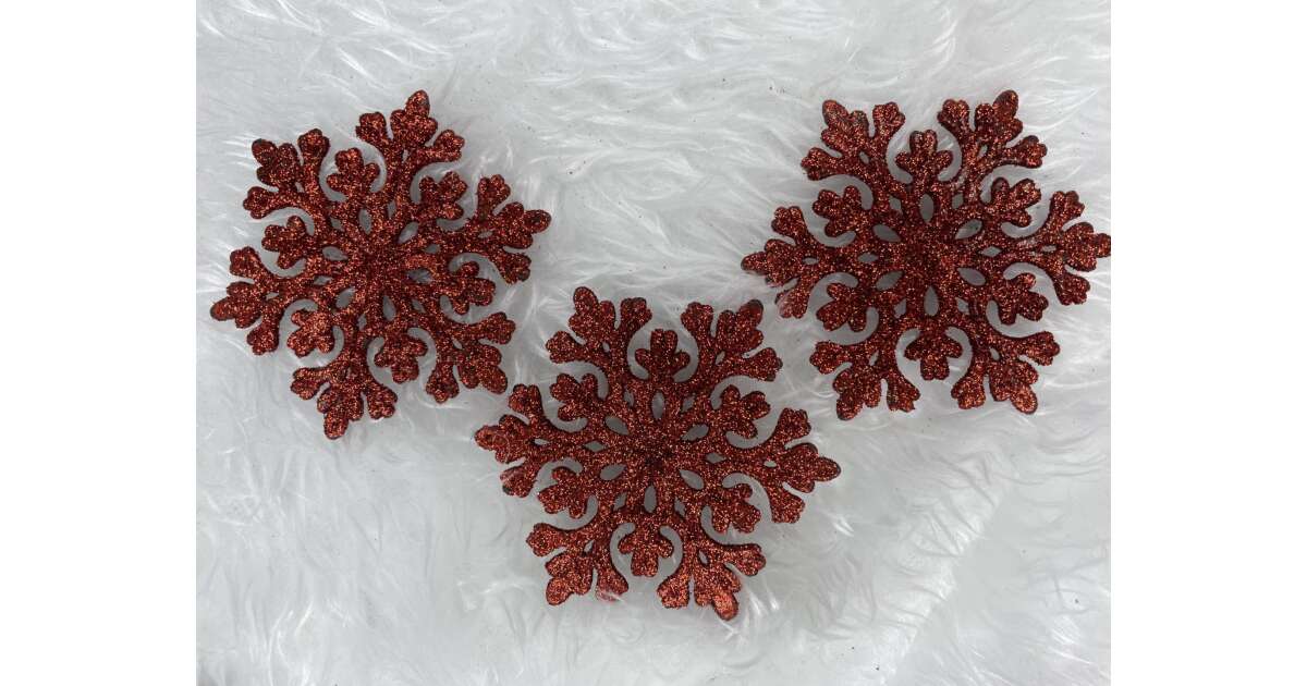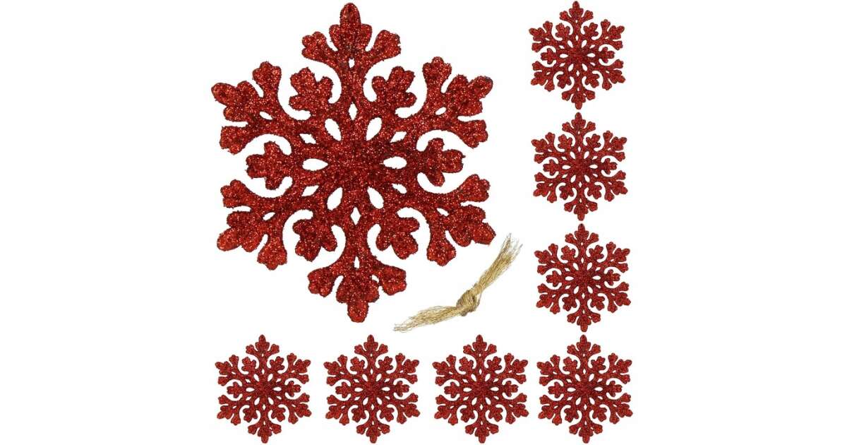 Červená trblietavá súprava ozdôb na vianočný stromček v tvare snehových vločiek (8 kusov) 🎄