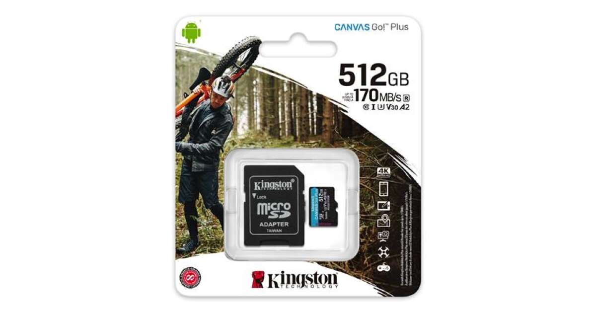 Táto microSD karta Kingston Canvas Go! Plus je ideálna voľba pre všetkých používateľov, ktorí chcú ukladať veľké množstvo dát a mať k nim rýchly prístup. Je perfektná aj na nahrávanie 4K videí!