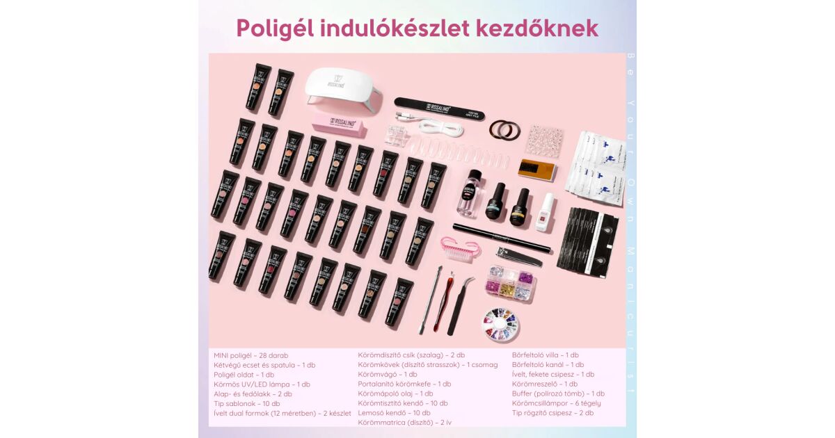 Sada na modelovanie nechtov Rosalind Polygel s UV/LED lampou a pilníkmi na nechty - 34 kusov RE12ZTC34-01 popis