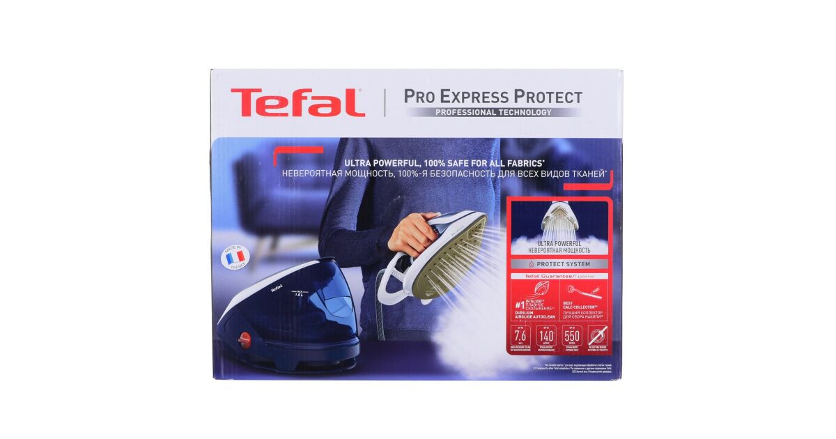 -Parný generátor TEFAL GV9221E0 ProExpress Protect, modrý, 2600 W, elektronické nastavenie teploty, 7,6 bar, 140 g/min, parný ráz 550 g/min, žehliaca plocha Durilium Airglide Autoclean Ultra T