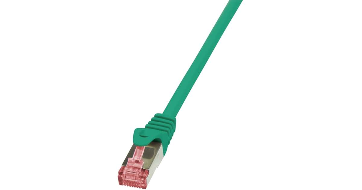 Jeden 1 meter dlhý, zelený patch kábel Logilink Cat.6 S/FTP PIMF PrimeLine s konektormi RJ45.