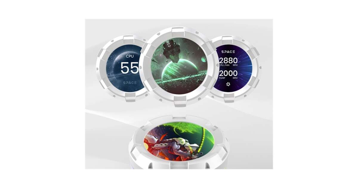 - LCD displej: LCD displej na čerpadle zobrazuje v reálnom čase teplotu CPU a GPU, ako aj otáčky ventilátorov a čerpadla.