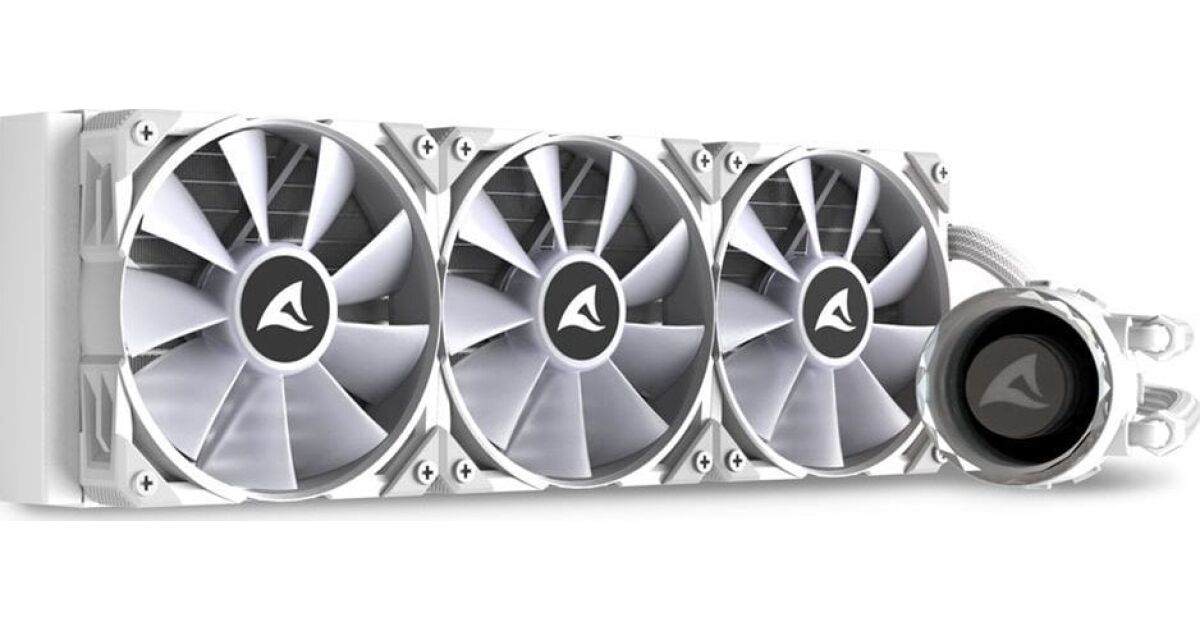 Vodný chladič CPU Sharkoon - S90 RGB White AIO 360 mm (max. 35 dB (A); max. 131,93 m3/h; 3x12cm, A-RGB LED, biely)