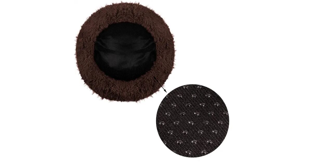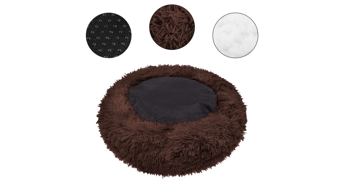 Tento mäkučký, hnedý plyšový pelech je perfektné miesto na oddych pre tvojho psa alebo mačku. Fľaškový pelech s priemerom 60 cm je príjemne teplý a hrubý, chlpatý materiál poskytuje extra pohodlie. Protišmyková spodná časť zabráni posúvaniu pelechu po podlahe.