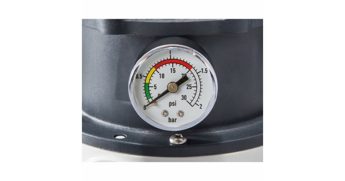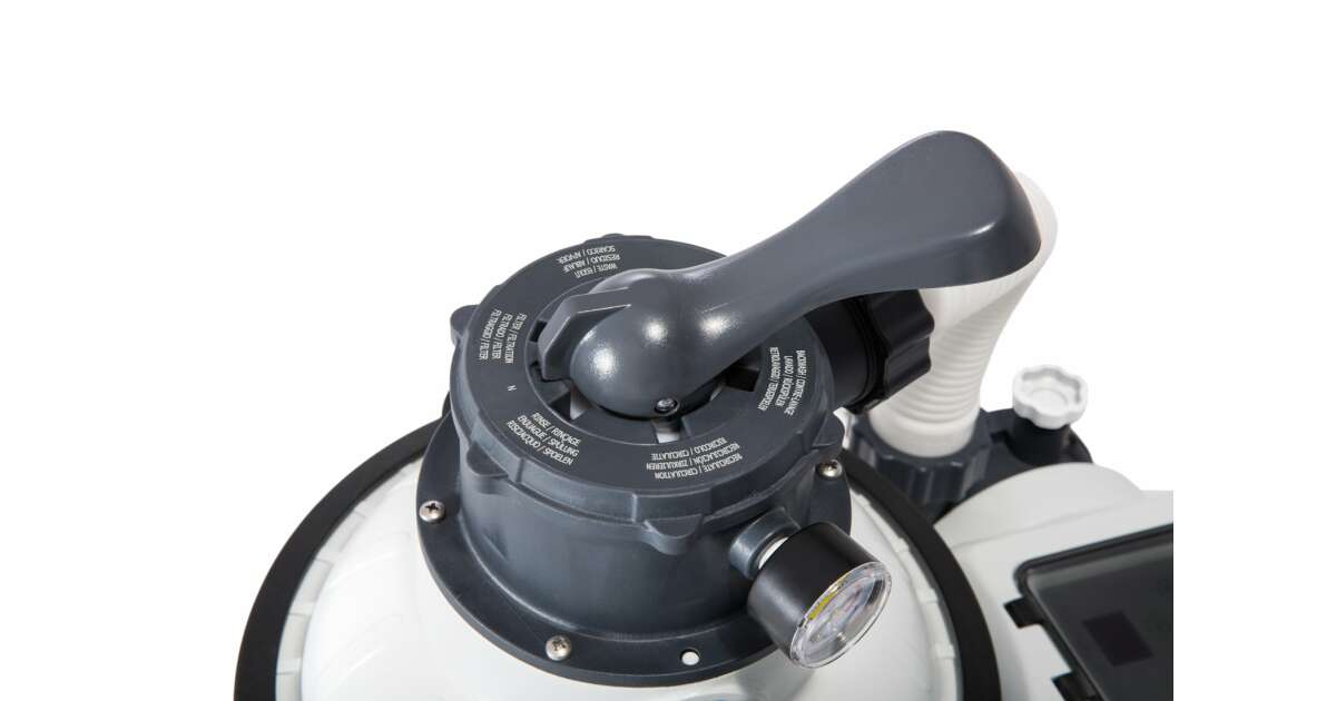 - Veľkokapacitná nádrž: pojme 12 kg filtračného piesku (odporúčaná veľkosť zrna 0,45 - 1,2 mm)