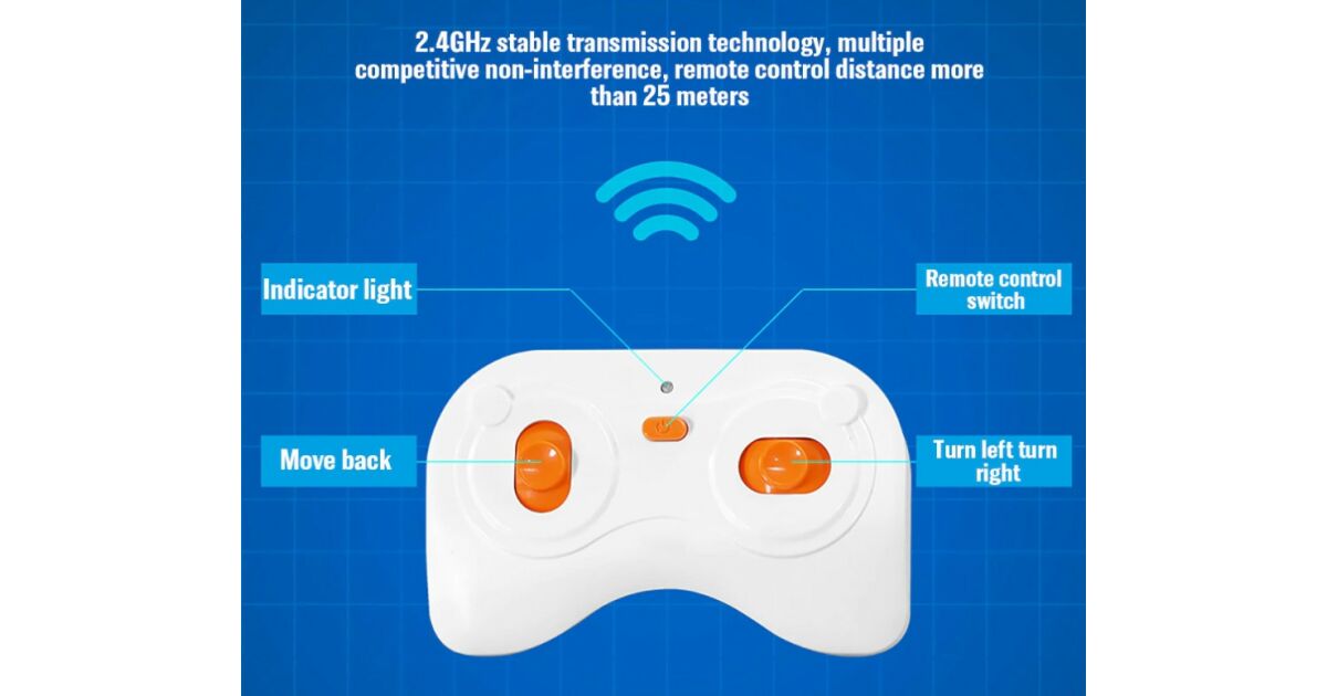 - Pokročilé funkcie: Ovládanie dopredu, dozadu, doľava, doprava, dosah cca 25 metrov