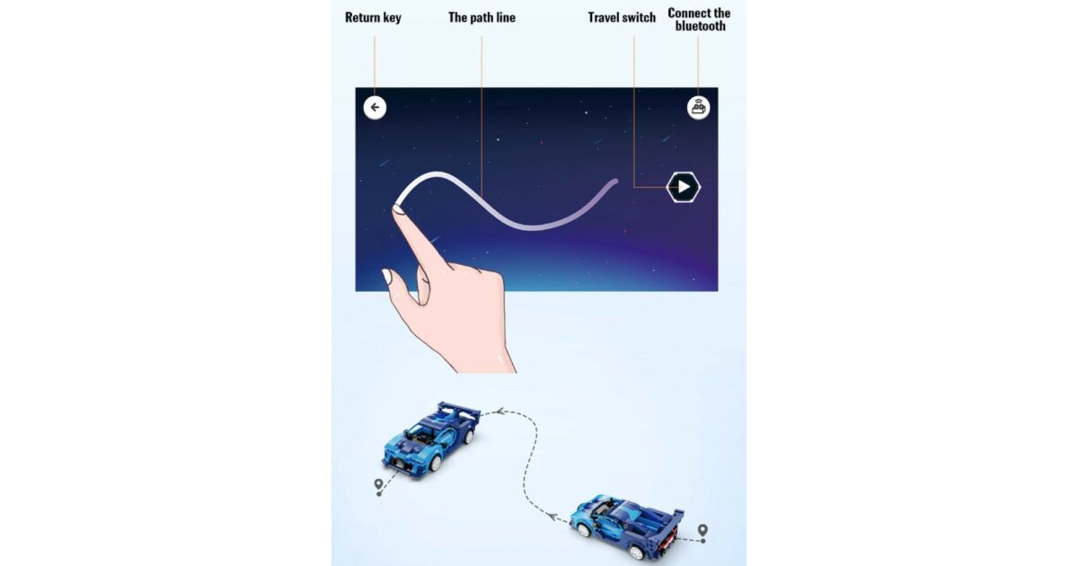 - Režim plánovania trasy: Nakresli trasu v aplikácii a sleduj, ako ju auto sleduje!