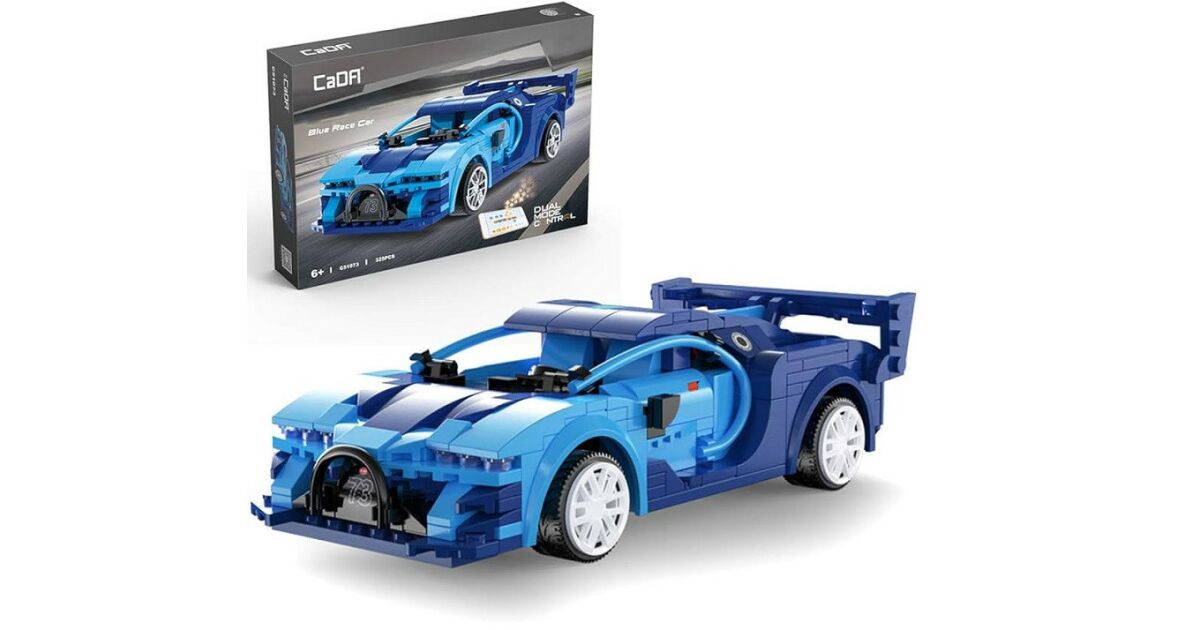 CaDA® C51073W - Hračka na stavanie modrého pretekárskeho auta na diaľkové ovládanie - 100% kompatibilná so všetkými ostatnými obľúbenými značkami popis