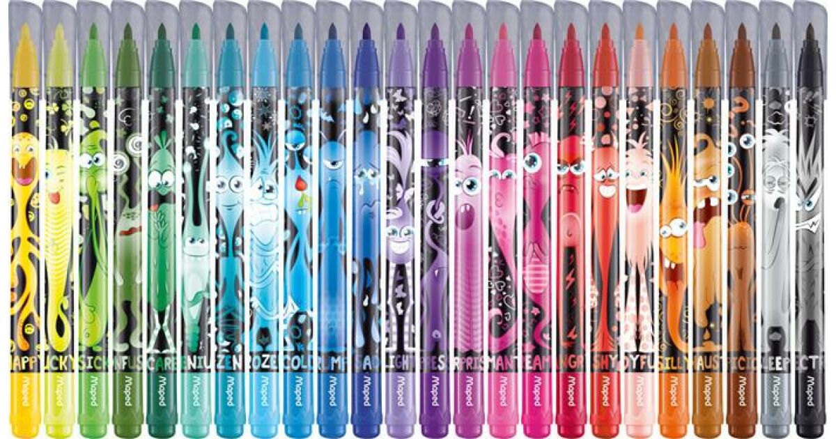 Balenie obsahuje: 1 ks sady 24 vyprateľných fixiek MAPED Color`Peps Monster.