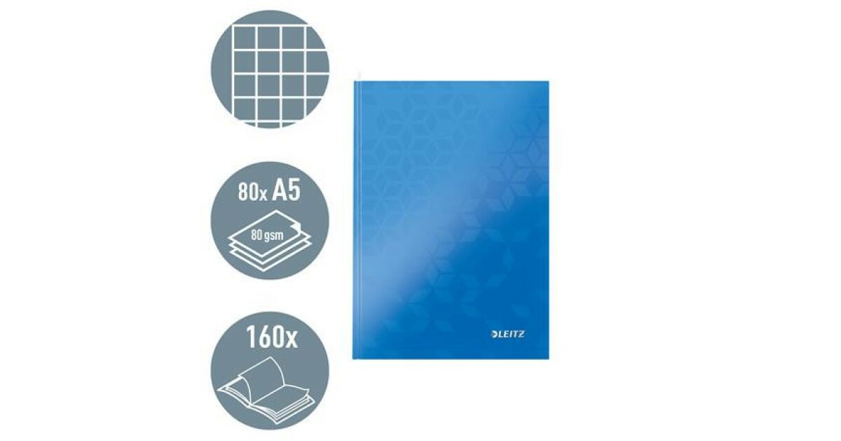 LEITZ Wow A5-kový kockovaný pevný zošit: Štýlový a praktický zápisník 📘