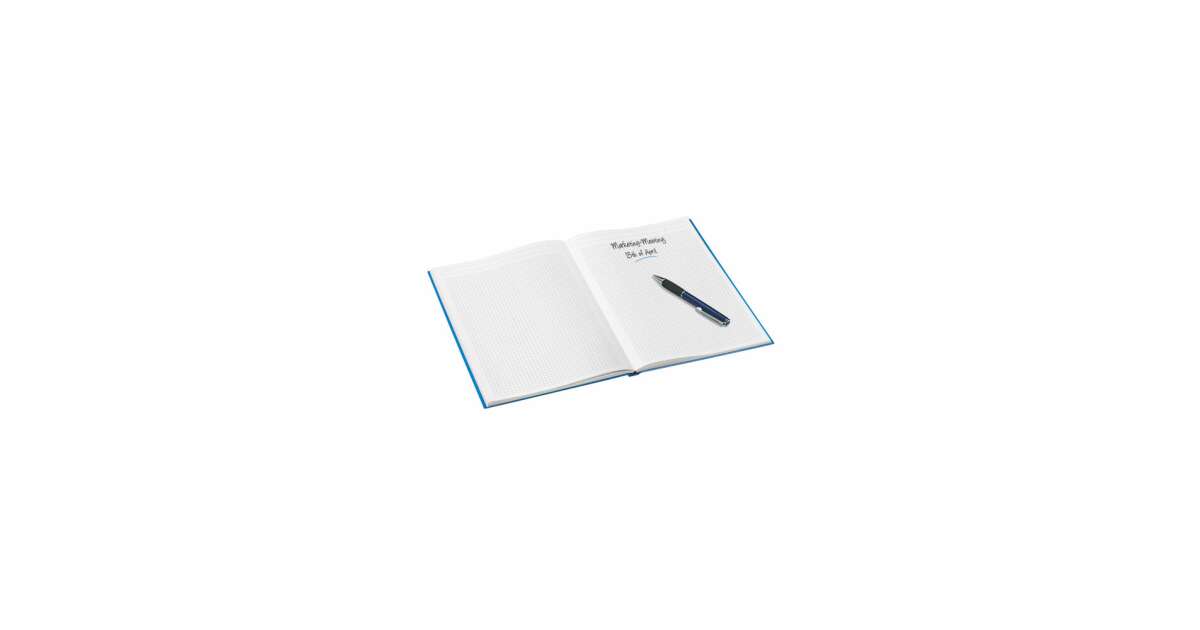 -LEITZ "Wow" A5 károvaná 80 listov tvrdá väzba lakovaná modrá popis
