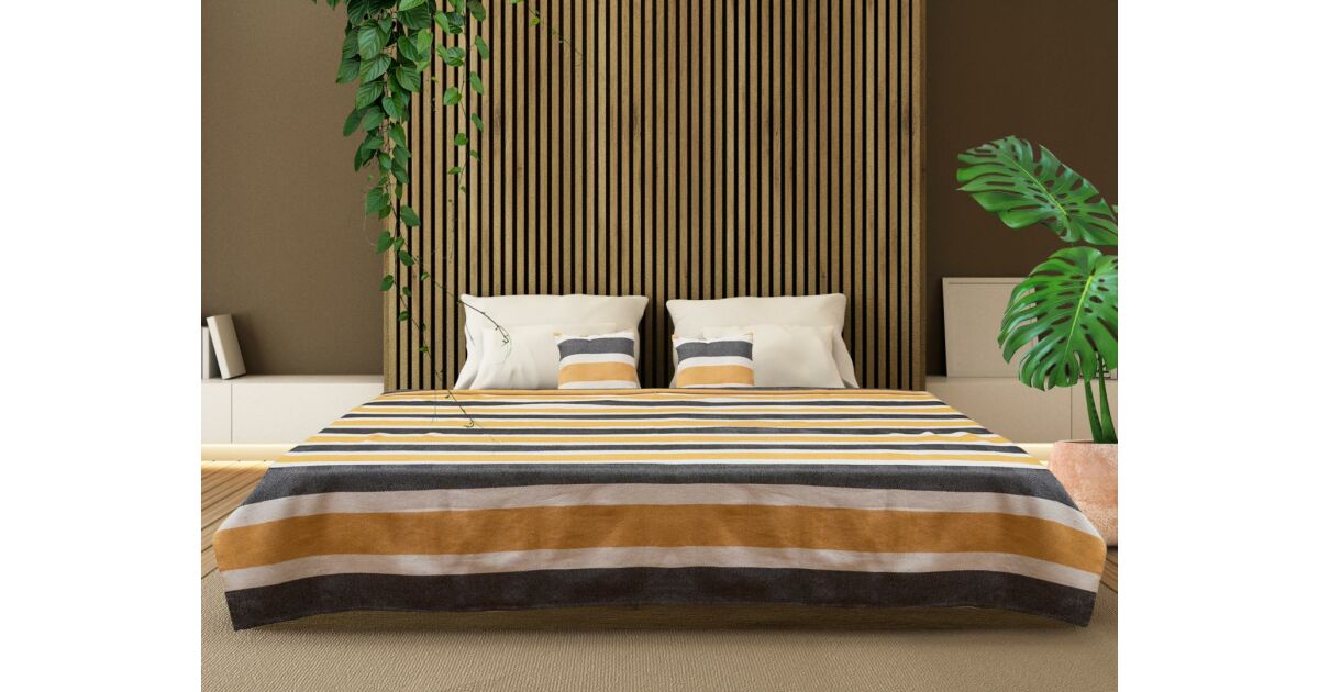 - Farba: Štýlový žltý prúžkovaný vzor, ktorý sa ľahko hodí k väčšine dekorácií spálne.