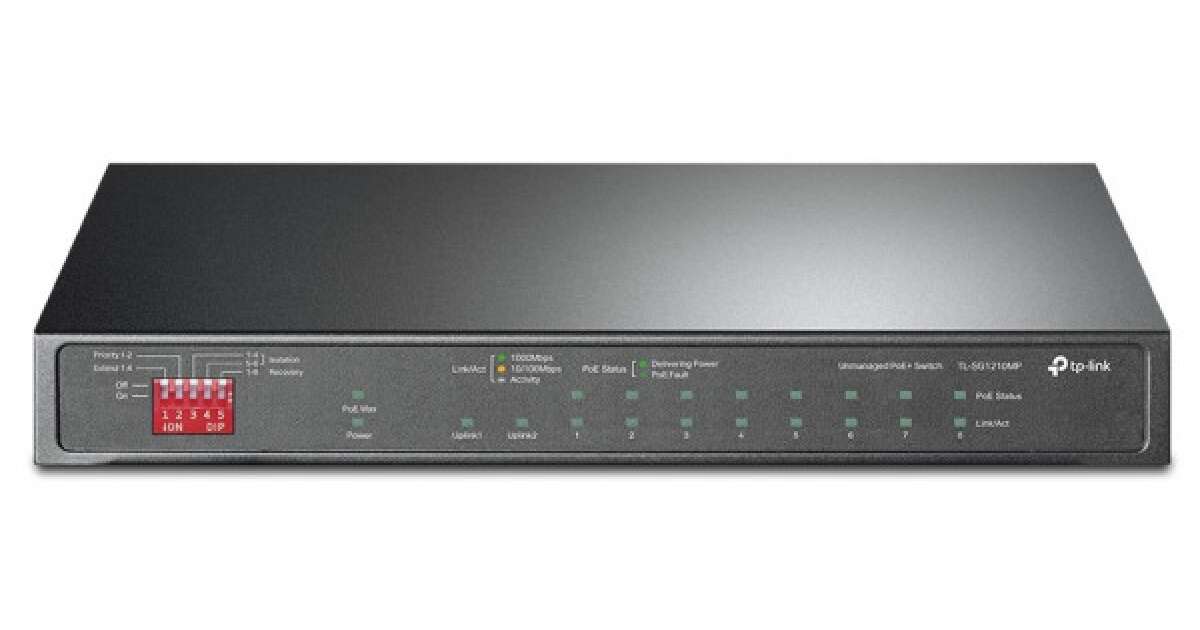 TP-Link Switch PoE - TL-SG1210MP (9 portov 1Gbps; 1 port RJ45/SFP 1Gbps; 8x at/af PoE portov; 123W)