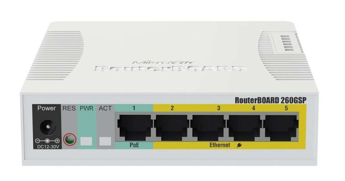 MikroTik RB260GSP 5+1 portový PoE Soho Switch (CSS106-1G-4P-1S)