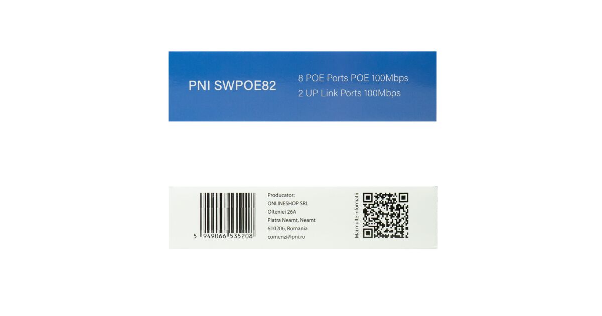 PNI SWPOE82 je 8-portový PoE (Power over Ethernet) switch, ktorý ponúka ideálne riešenie na napájanie a sieťové prepojenie IP kamier, VoIP telefónov a iných zariadení kompatibilných s PoE. Vďaka 2 uplink portom ho možno jednoducho integrovať do existujúcej siete.