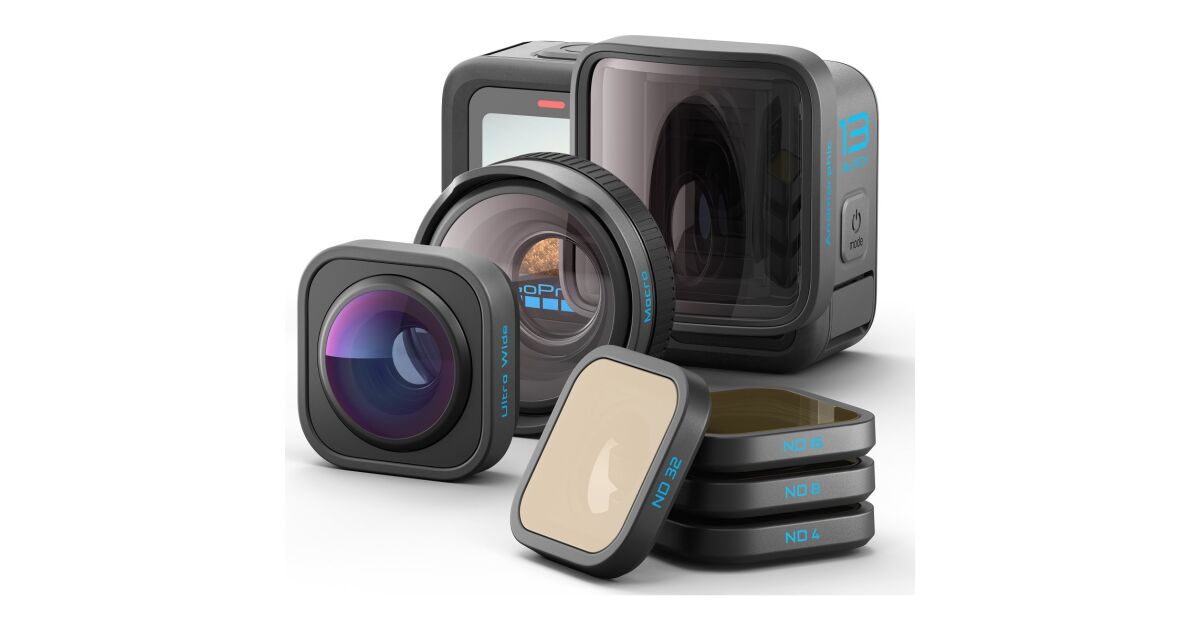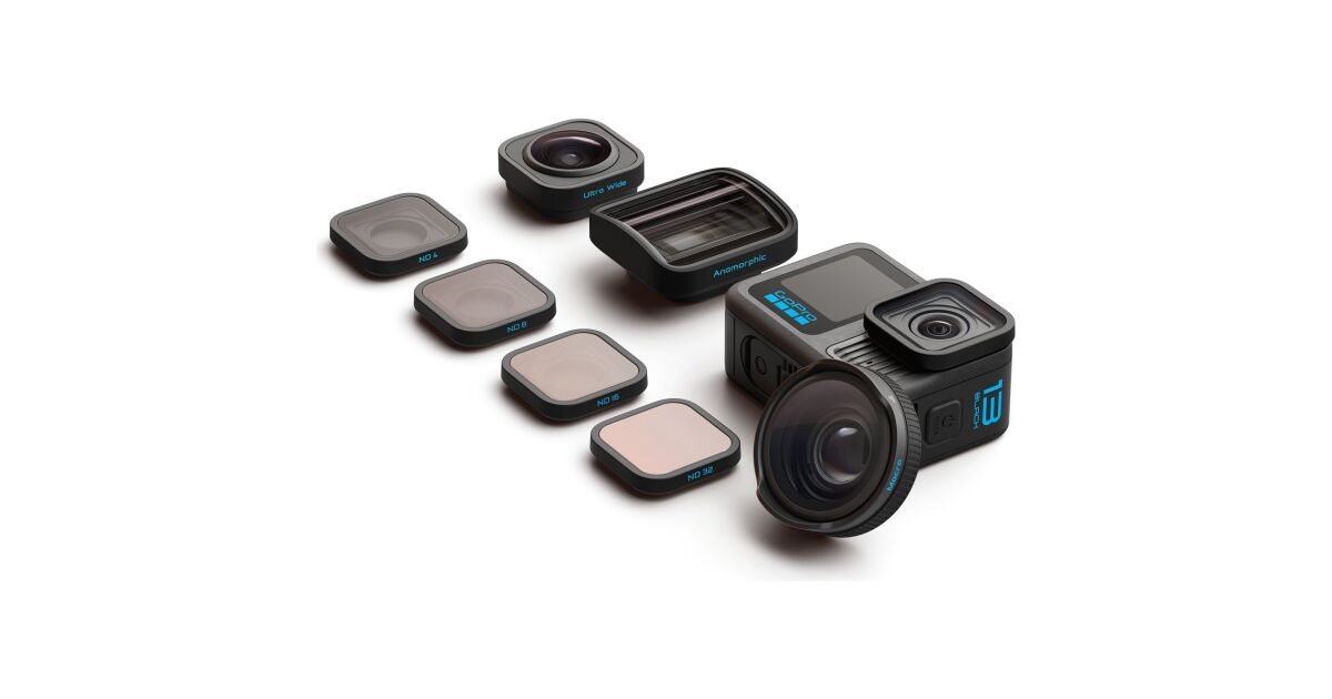 Set obiective GoPro HB pentru camera HERO13, ultra-wide, macro, anamorfic, filtre ND, rezistent la apa popis