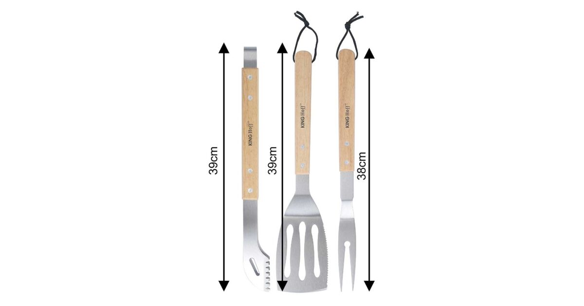 Sada 3 grilovacích náčinia Kinghoff KH1918, nehrdzavejúca oceľ, drevené rukoväte popis
