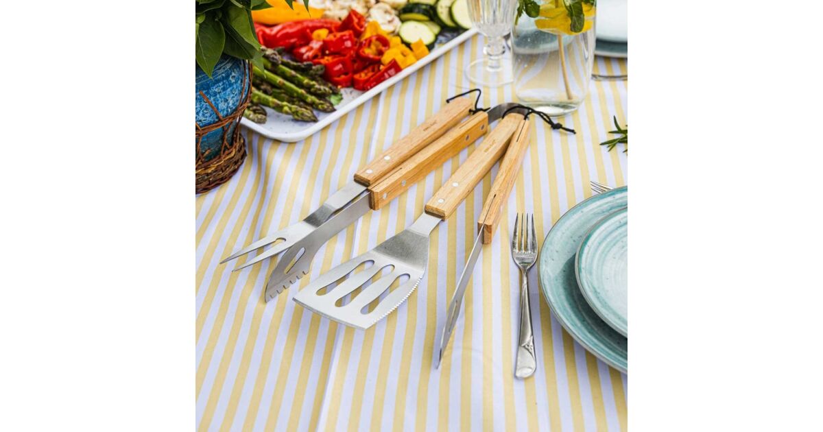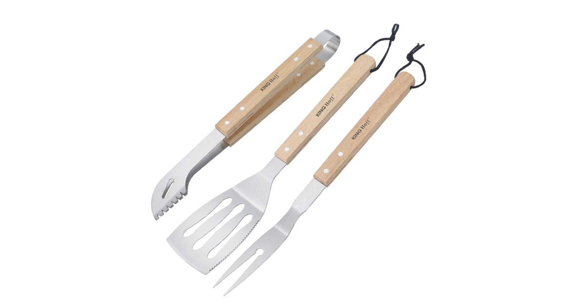 Sada 3 grilovacích náčinia Kinghoff KH1918, nehrdzavejúca oceľ, drevené rukoväte