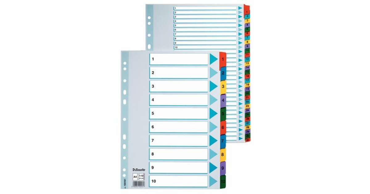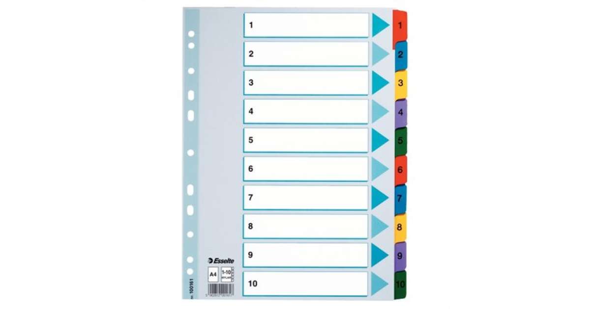 Esselte Mylar Registre: Priečinok na A4 dokumenty, čísla 1-10, balenie 10 ks