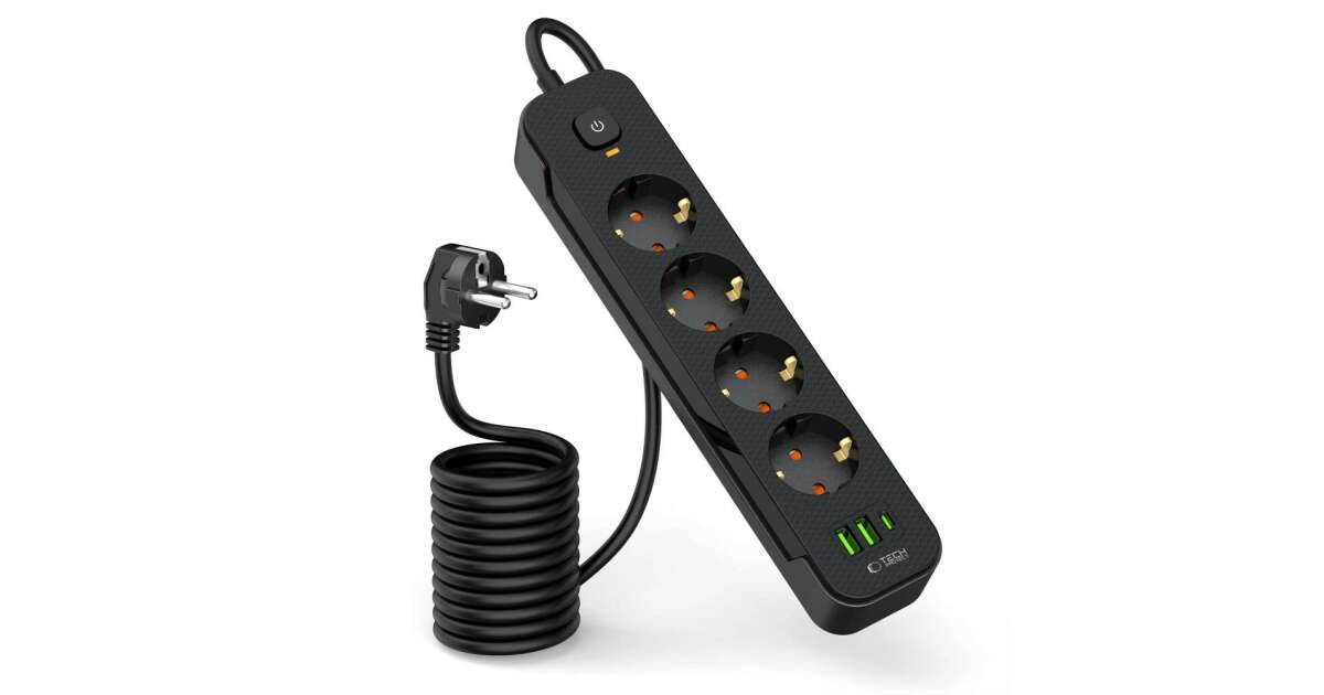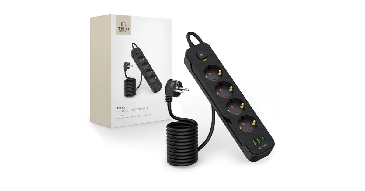 Tech-Protect PCL4X3 Napájací kábel: Multifunkčný rozbočovač so 4 zásuvkami a USB nabíjaním 🔌