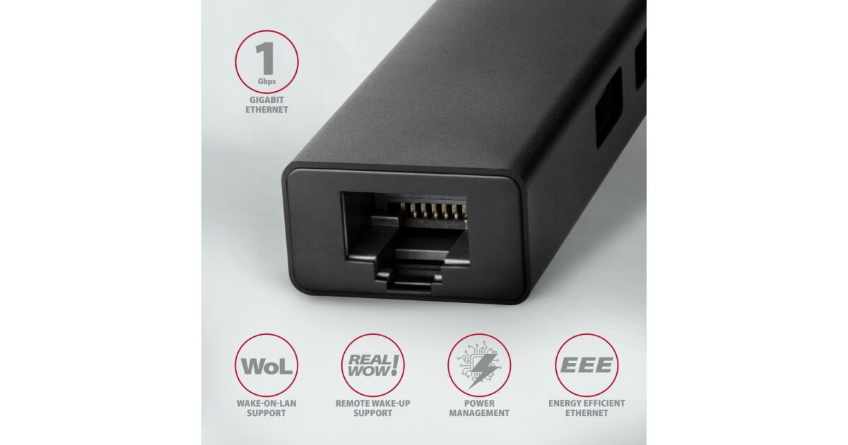Tento kompaktný a elegantný Axagon USB-C hub je perfektným doplnkom pre váš notebook alebo počítač. Rozširuje možnosti pripojenia o tri extra porty USB-A a taktiež disponuje portom Gigabit Ethernet RJ45 LAN, ktorý zaisťuje rýchle a stabilné sieťové pripojenie.