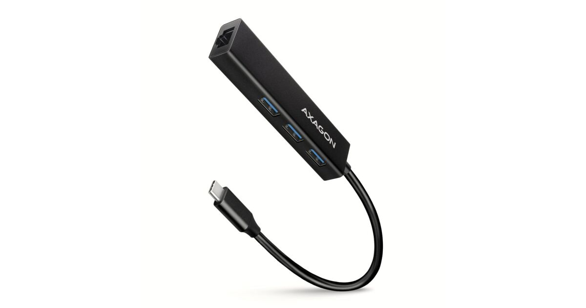Axagon USB-C Hub: 3 porty USB-A + Gigabit Ethernet RJ45