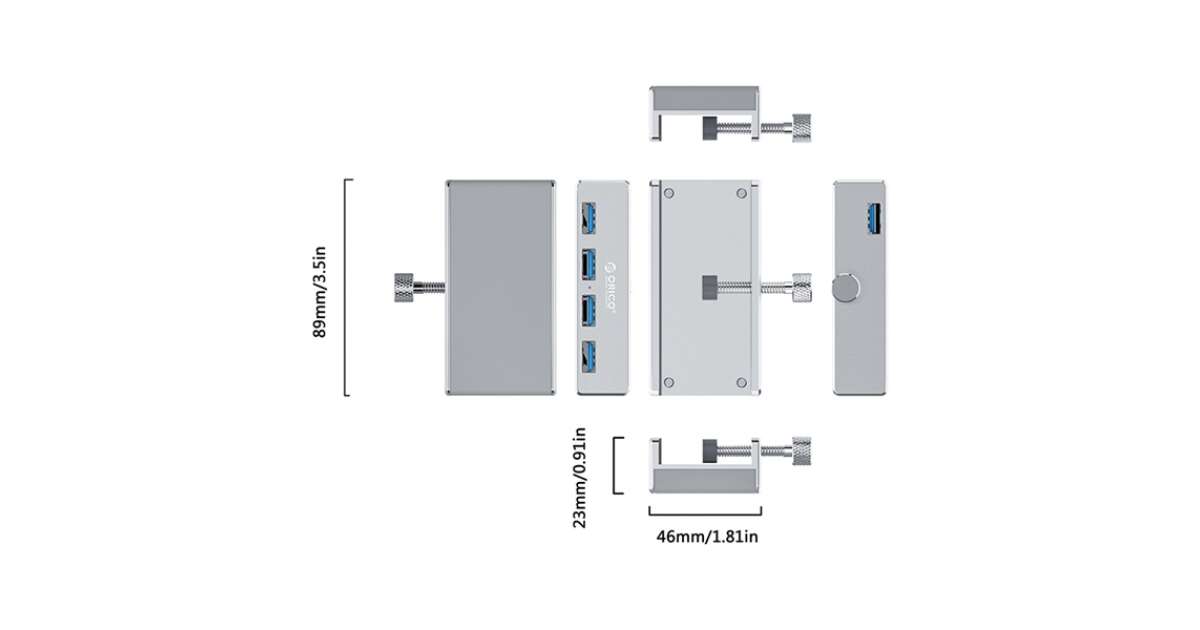 Orico USB3.0 Hub - MH4PU-SV /161/(4 porty, vstup: USB-A, výstup: 4xUSB-A, montáž, strieborná) popis