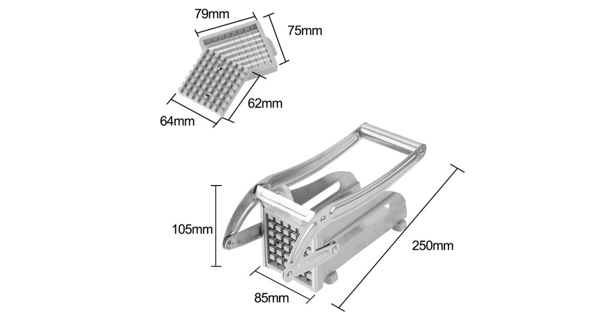 Tento ručný krájač z nehrdzavejúcej ocele zmení vaše krájanie zemiakov! Rozlúčte sa s únavným, nerovnomerným krájaním a privítajte rovnomerné, dokonalé zemiakové hranolky zakaždým. Zariadenie má dve veľkosti krájacích vložiek, takže si ľahko pripravíte tenké hranolky na vyprážanie alebo hrubšie plátky na iné jedlá.
