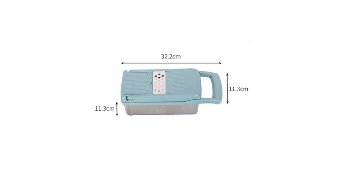 -Multifunkčný krájač, flippy, strúhadlá, 8 v 1, na ovocie a zeleninu, 10 kusov, čepele z nehrdzavejúcej ocele, zásobník, oddeľovač vajec, ochrana rúk, ABS, 32,2 x 11,3 cm, modrá/biela