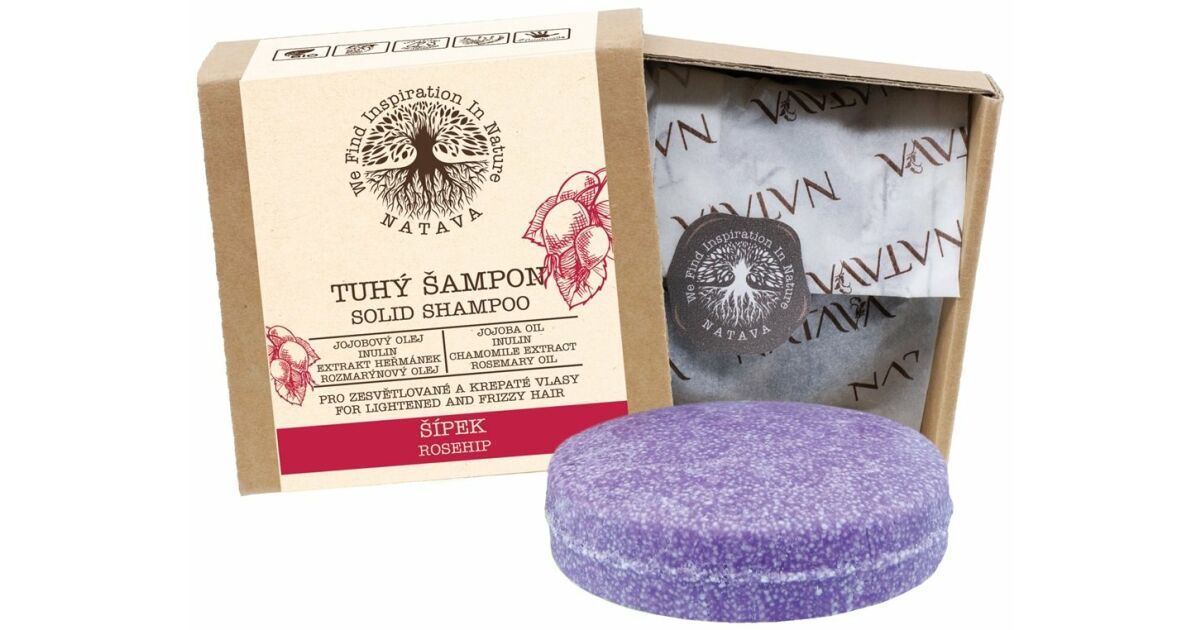 Natava tuhý šampón pre zosvetlené a kučeravé vlasy s extraktom zo šípky, 85g popis