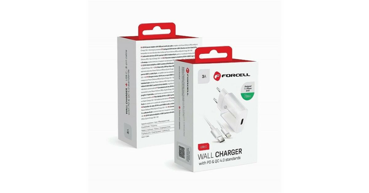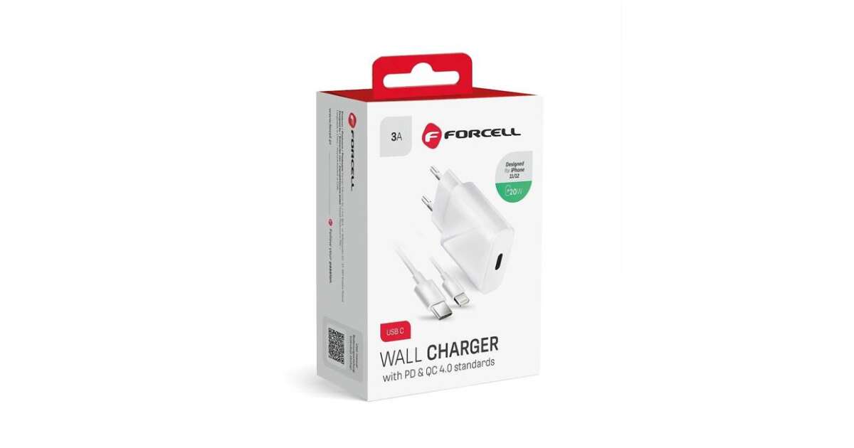 Sieťová nabíjačka Forcell s Lightning káblom, výstup typ C 3A 20W PD / QC4.0